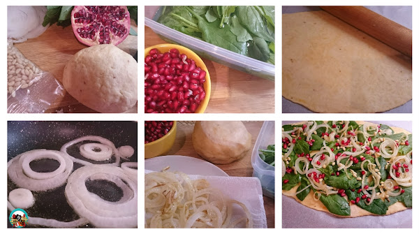 En el blog tengo algunas cocas dulces y saladas que he cocinado en otras ocasiones. La de hoy la he hecho con verduras y frutas de temporada; las espinacas y las granadas. Ingredientes muy sencillos que combinan muy bien entre si.