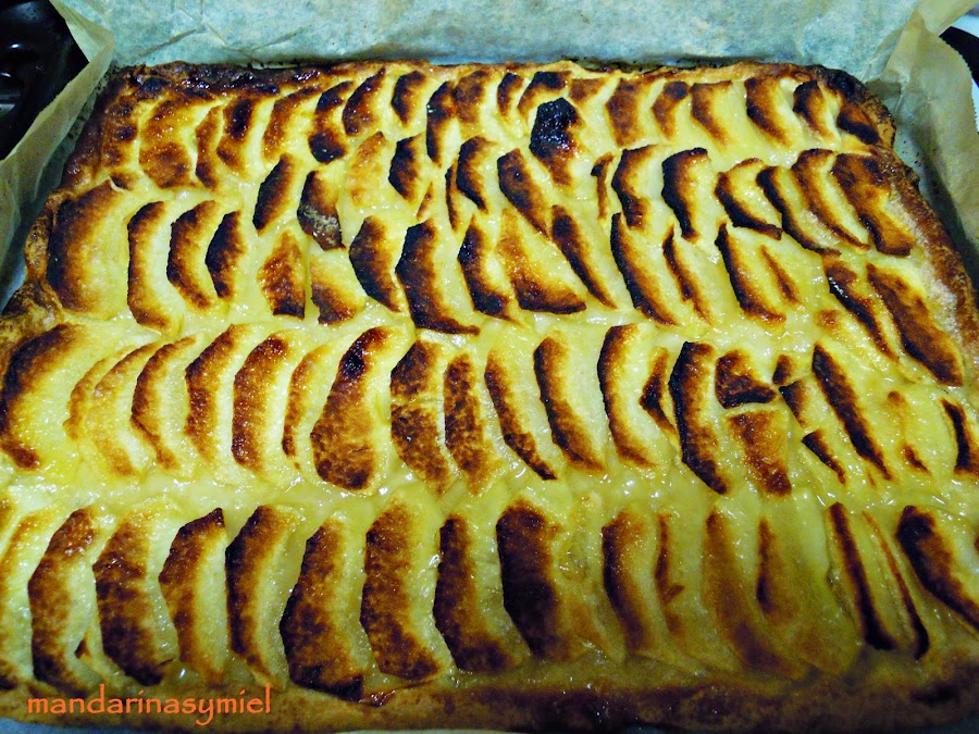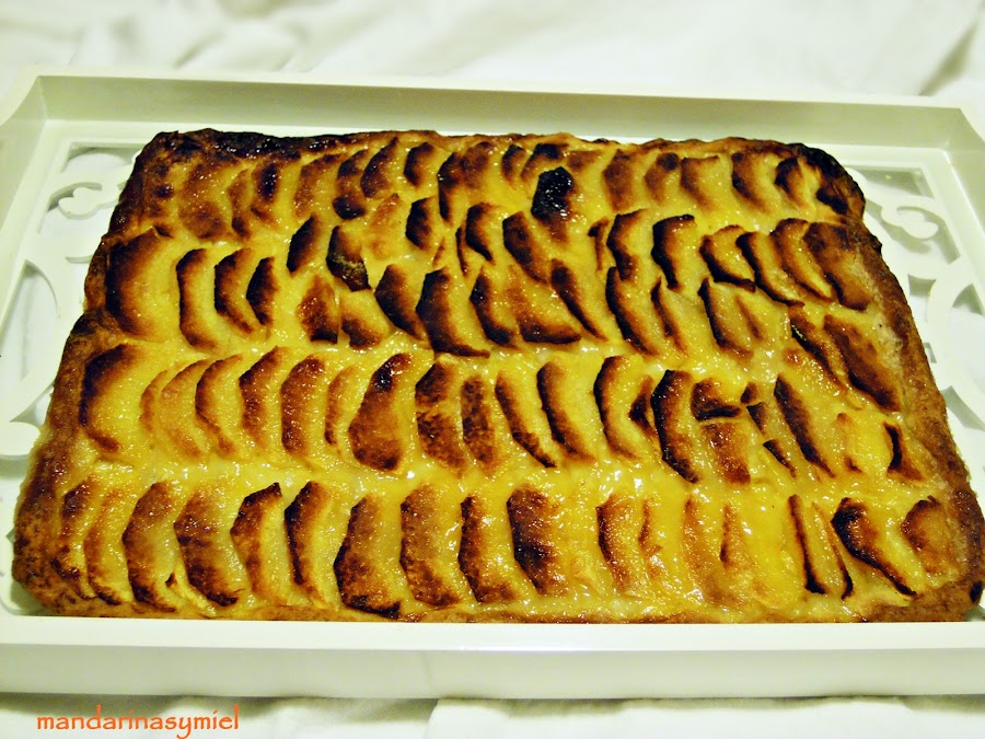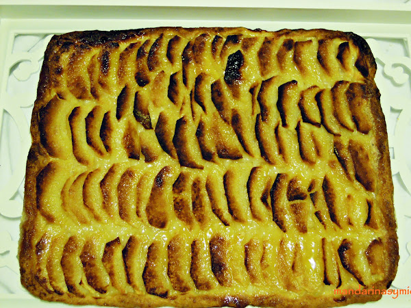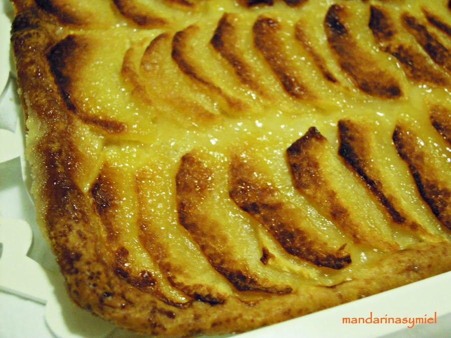 Esta coca de manzana o "coca de poma" como la llamamos por mi tierra, es muy típica en todos los pueblos de Castellón, grandes o pequeños, de la costa o del interior. La hacen en las panaderías de toda la vida y es deliciosa!!
