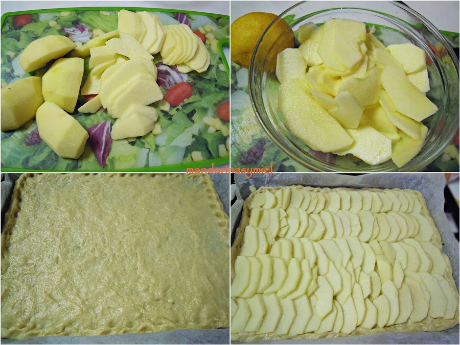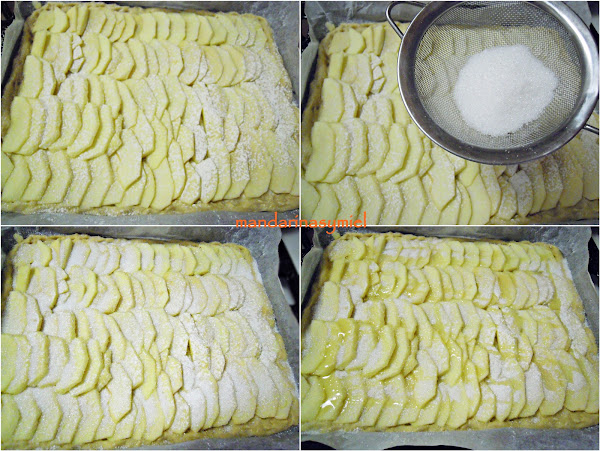 Coloca la manzana por encima de la masa hasta que quede totalmente cubierta.