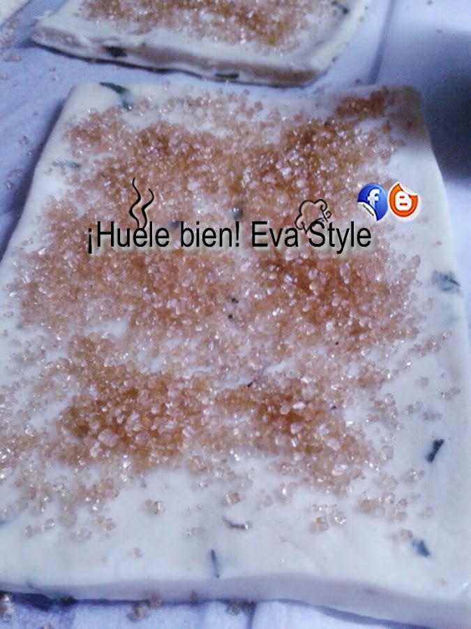 2.- Rociamos sobre ellas azúcar moreno. Cubriendo toda la superficie. Así nos quedará más dulce y crujiente.