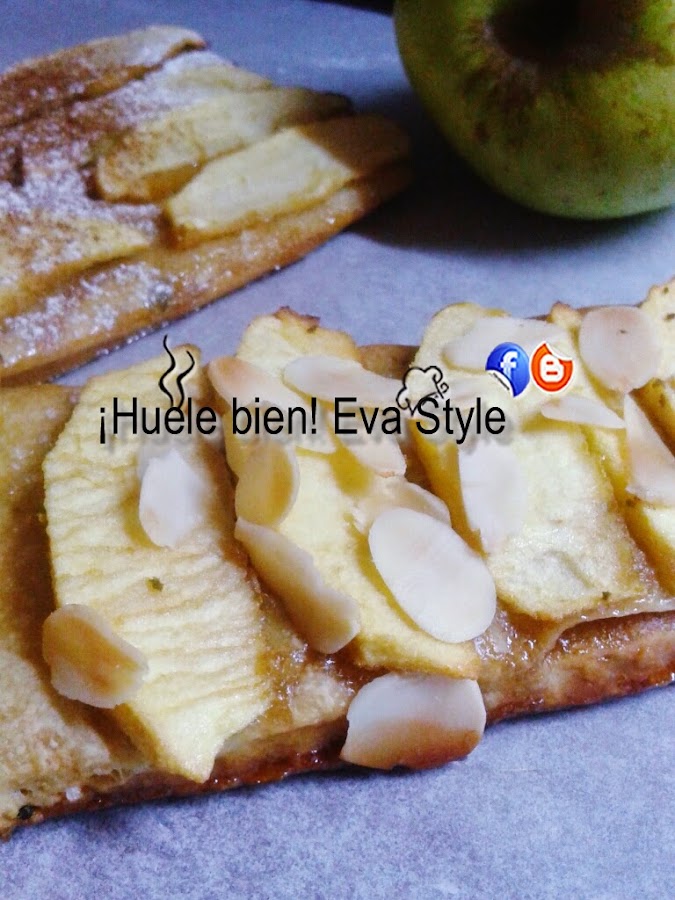 Hoy he publicado una receta de coca con verduras, con la masa restante hace una hora he cocinado estas delicias de cocas con manzana verde.