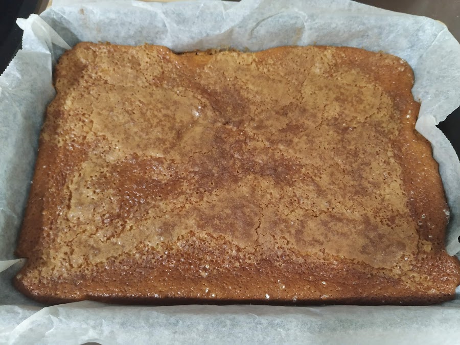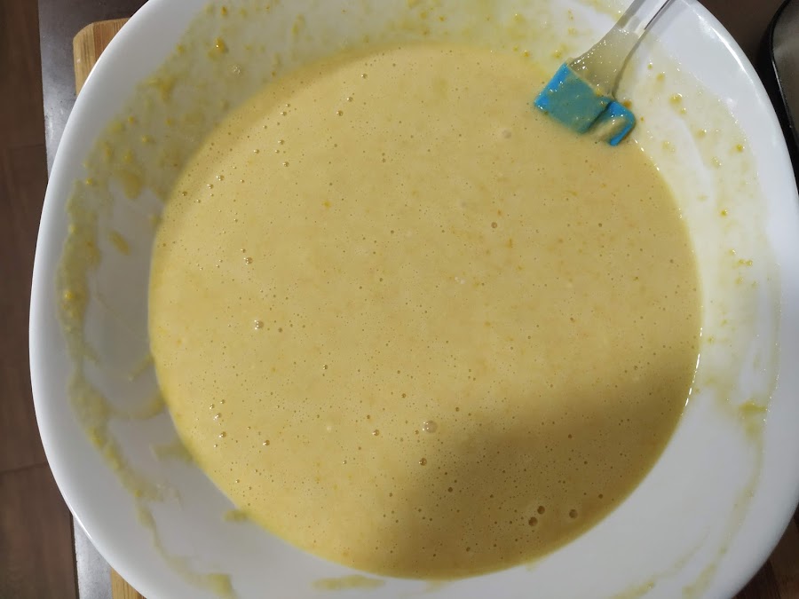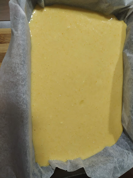una vez esté todo en el bol cogeremos y empezaremos a mezclar con la ayuda de una espátula o lengüeta (hay que mezclar bien durante un rato para que no quede ningún grumo), una vez esté todo bien mezclado cogemos un bol rectangular y le ponemos papel de horno y vertemos todo el contenido en el bol,