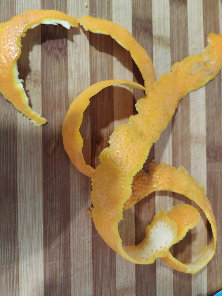 En primer lugar cogemos la naranja y la lavamos, si es de las de zumo que tienes la piel fina podemos trocearla y echarla dentro del vaso de la batidora, si tiene la piel gruesa la pelamos quitándole sólo la corteza y dejando lo blanco que es lo que amarga,