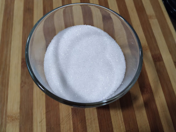 ahora ya por último cogemos y ponemos en un vaso dos cucharadas soperas de azúcar y una cucharada sopera de canela todo junto y lo mezclamos bien y lo esparcimos por encima de la coca para que luego cuando esté cocida queda una costra que queda muy buena, esto es opcional pero os lo recomiendo,