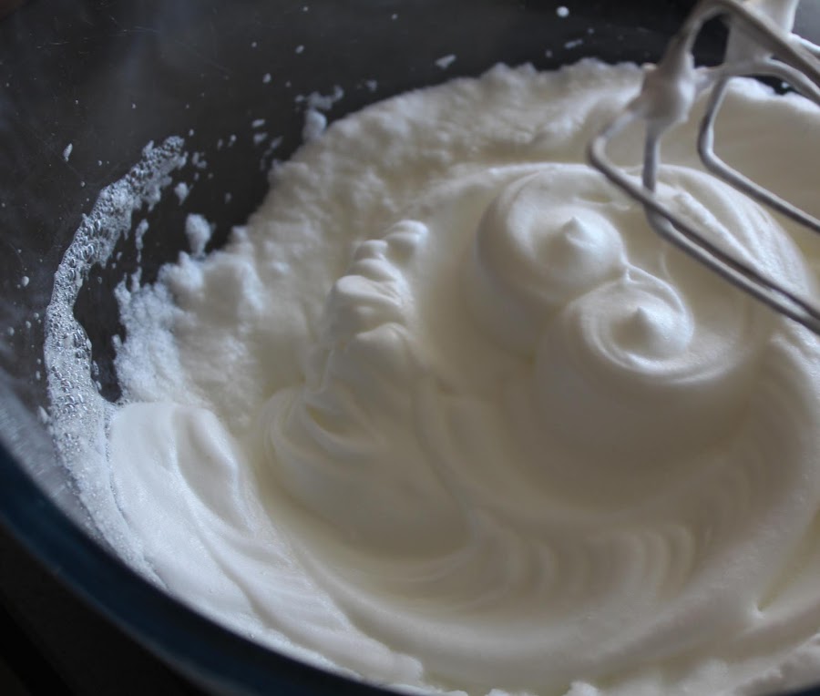 Montamos las claras a punto de nieve y las vamos integrando a la masa, de abajo a arriba.