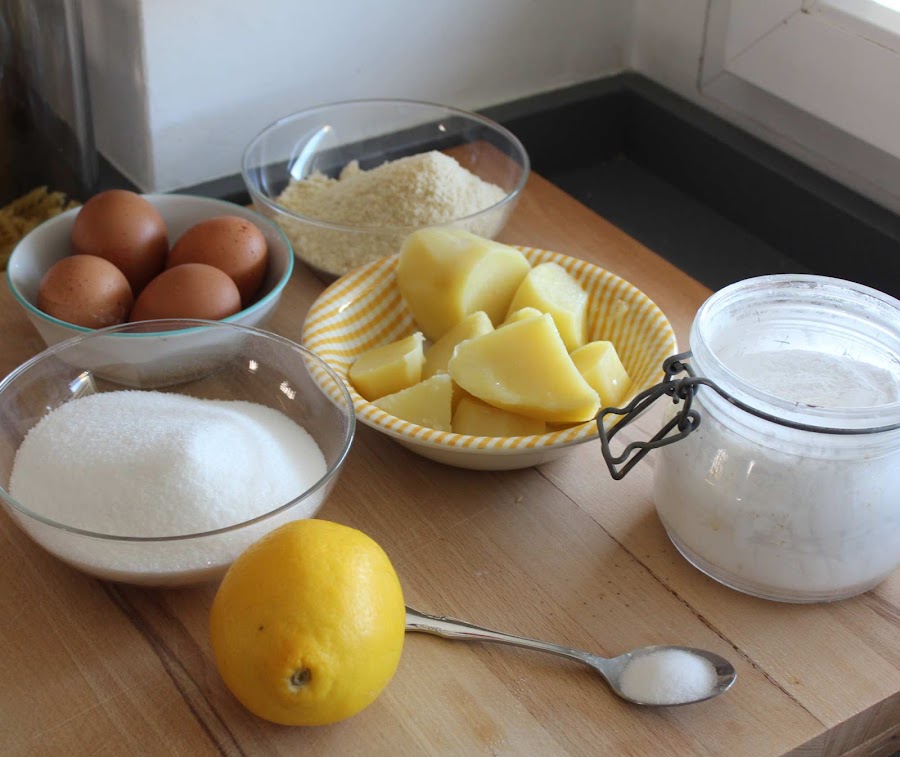 Las ponemos troceadas en un bol, junto con las cuatro yemas de huevo.