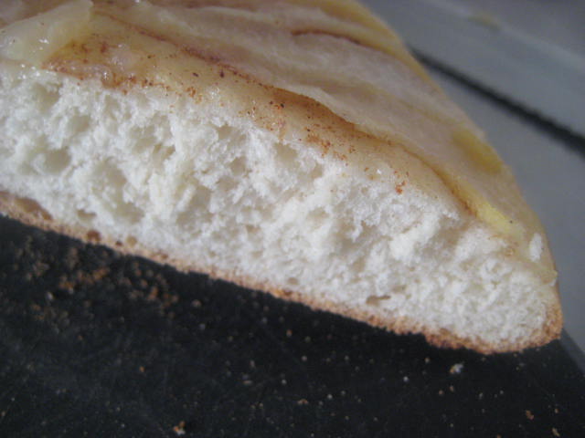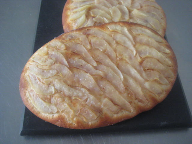 Preparación: Se puede hacer la masa a mano o a máquina. Para ello poner en un bol la harina, levadura, agua, leche y azúcar. Amasar 5 minutos y agregar la sal y el aceite. Volver a amasar hasta que quede una masa elástica. Tapar con film y dejar fermentar en bloque una hora a temperatura ambiente o hasta el día siguiente en la nevera. Queda mucho mejor, pero se puede reposar la masa a temperatura ambiente y en un par de horas proceder a la preparación de la coca. Pasado el tiempo de reposo que hayamos decidido darle, extender la masa sobre la mesa de trabajo para dejarla fina como si se tratase de una pizza. Una vez hecho esto colocar la masa en la bandeja del horno forrada con papel. Tapar y dejar reposar mientras unos 10 minutos. Mientras tanto preparamos las peras que deberán estar peladas y cortadas en láminas finas. Pasados los 10 minutos poner sobre la cocas un poco de canela molida, un poco de azúcar y unas gotas de aceite de oliva. Luego colocar las peras de bonita forma y rociar con aceite y volver a salpicar, esta vez generosamente con azúcar. Pincelar con huevo batido todo el borde. Fermentar hasta que estén bien "gorditas". Luego cocer en el horno a 190º C durante unos 20-25 minutos. Una vez cocidas, retirar del horno, esperar unos minutos y colocar sobre rejilla para que se enfríen.