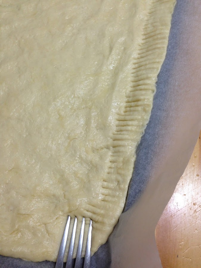 Ahora con un tenedor podemos afianzar y decorar los bordes de nuestra coca.