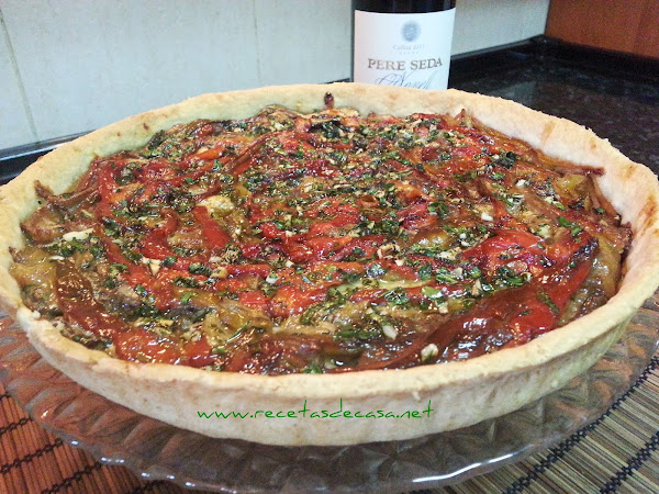 Coca de pimientos y berenjenas asados