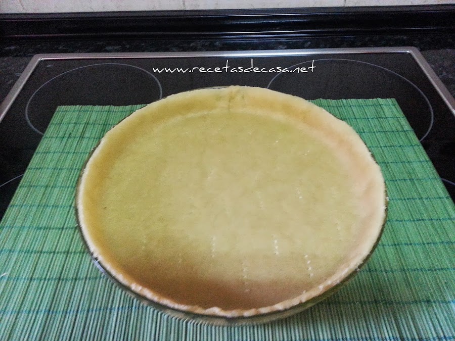 Estiramos la masa, la colocamos en un molde y la pinchamos con un tenedor.