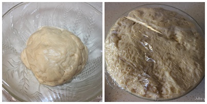 Sacamos la masa y la ponemos en un bol untado de aceite, la tapamos con film transparente y la dejamos levar 2 horas mas o menos, hasta que doble su volumen en un lugar cálido. Yo caliento el horno a 30º y lo apago. Meto la masa y leva muy bien.