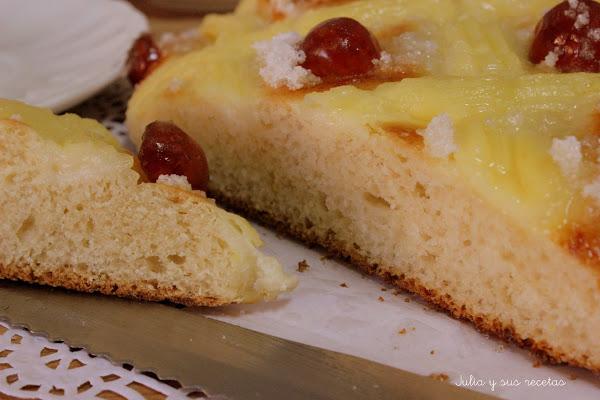 También he de deciros que hay muchas variantes de esta coca. Se puede hacer con crema, como ésta o con cabello de ángel, con fruta confitada, con piñones , con chicharones...