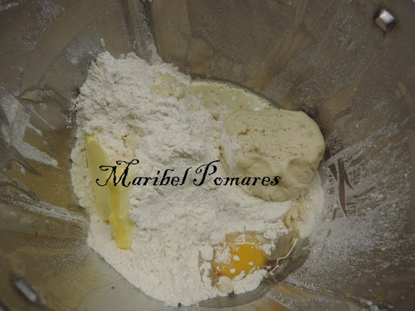 Ahora añadimos la harina, esencia de vainilla, mantequilla, huevo, azúcar.
