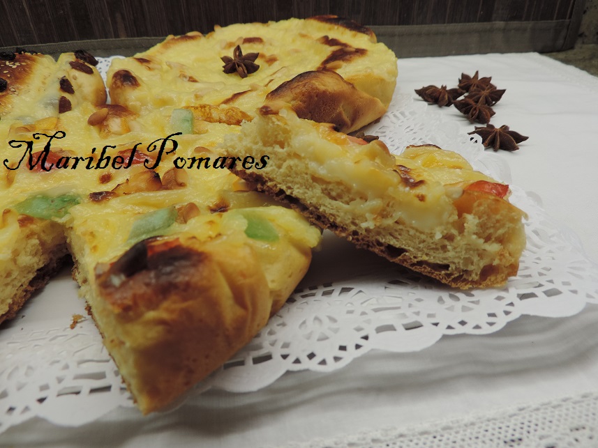 Esta es la que le puse piñones, pero han desaparecido con la crema pastelera.