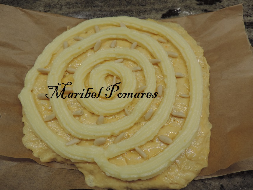 Le ponemos por encima la crema pastelera con la ayuda de la manga.