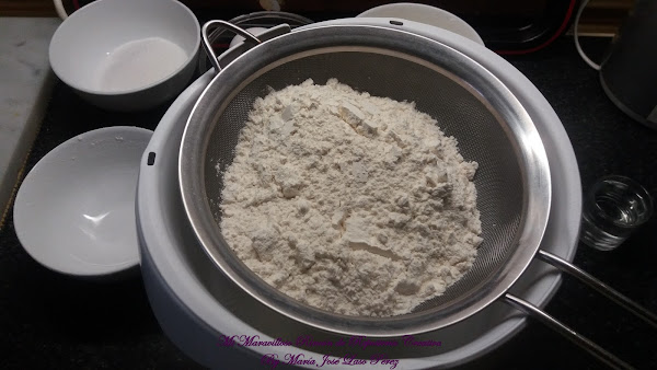 Por otro lado en el bol de la amasadora y con el accesorio de gancho, mezclaremos los ingredientes de la coca. Empezamos tamizando la harina y la canela.