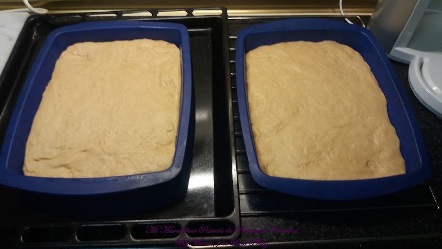 Pasado este tiempo, dividir la masa en dos partes iguales, a mi me han salido dos cocas de 700 grs, aproximadamente.