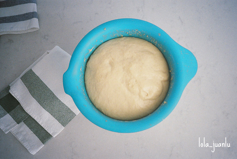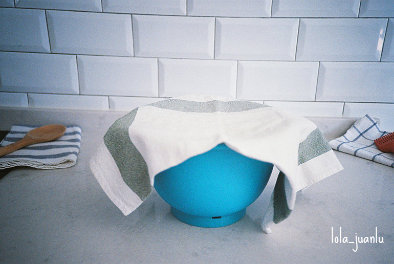 Si hemos amasado a mano, formamos una bola con la masa, untamos un bol con aceite de oliva, introducimos la bola de masa en él y tapamos con un paño. Si hemos utilizado robot, únicamente tapamos con un paño de cocina y dejamos reposar a temperatura ambiente durante una hora y media.