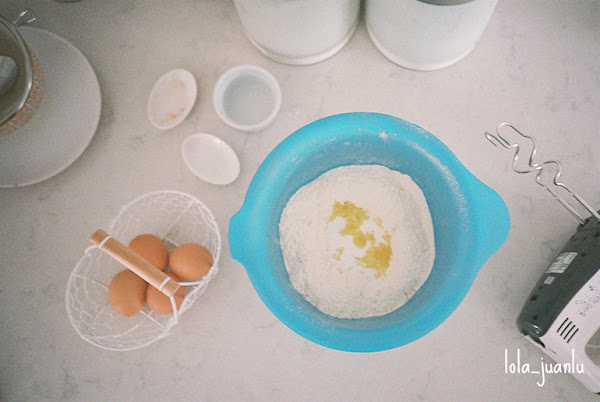 Tamizamos la harina junto con la canela y la colocamos sobre la superficie de trabajo formando un volcán. En su interior colocamos la sal, el azúcar, los huevos y la ralladura de limón. Mientras amasamos vamos a ir añadiendo poco a poco la mitad del agua. Podemos hacerlo manualmente o con un procesador de alimentos con el accesorio gancho.