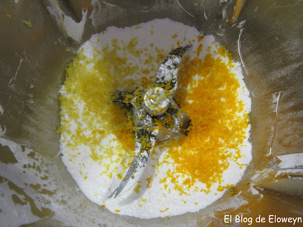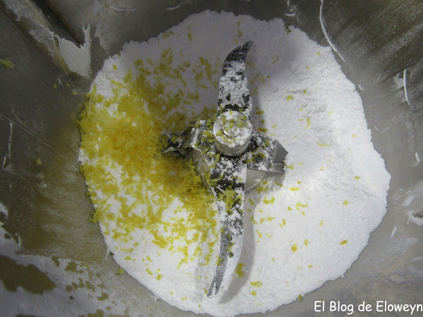 Añadimos la piel del limón. Cuidado cuando cortéis la piel del limón. No tiene que quedar ninguna parte blanca. De lo contrario, os puede dejar la coca amarga. Yo directamente la rallé.