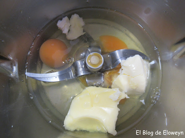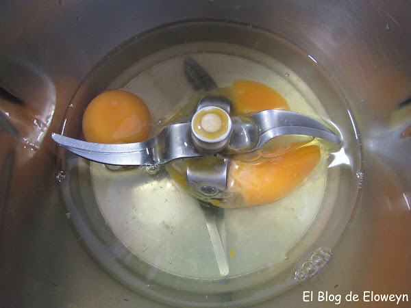 Cerramos el vaso y le damos unos golpes de turbo para limpiar las paredes y la tapa. Añadimos los dos huevos.