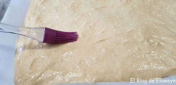 Pintamos con el huevo batido por segunda vez y con muchísimo cuidado de que no se desinfle la coca.