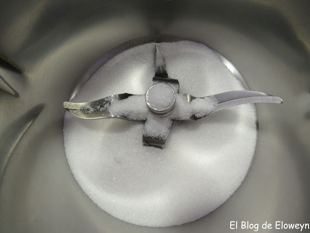 Convertimos el azúcar en azúcar glas triturando durante 30 segundos a velocidad progresiva 5-10.