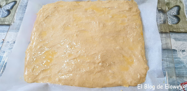 En este momento, podéis hacer dos cosas. La primera opción es encender el horno y ponerlo a 50º. Una vez haya alcanzado esta temperatura, apagadlo y meted la coca para que leve más rápidamente, o bien, la segunda opción: Dejar levar un par de horas a temperatura ambiente.