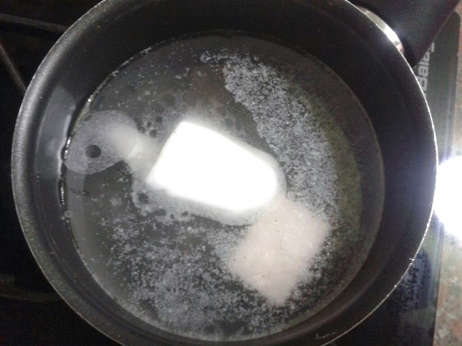 diluimos manteca y levadura en agua tibia hasta que se deshaga todo.