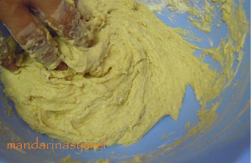 Añade poco a poco la harina y ves mezclando, cuando esté todo unido, pon la masa en la encimera y amasa con las manos hasta que se te despegue. Aunque te parezca que puedes añadir más harina, no pongas más que te quedará seca y dura.