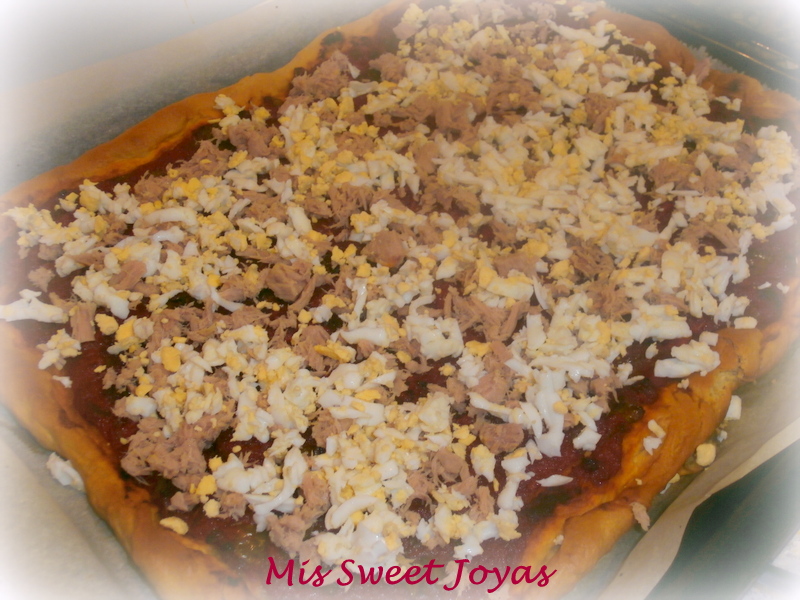 Una vez hecha, le añadimos el huevo rallado y el atún por encima y lista!!