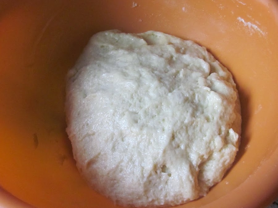 Nos tiene que quedar una bola que se despegue del bol. Igual necesita algo mas de harina, eso se ve si la masa no se despega.