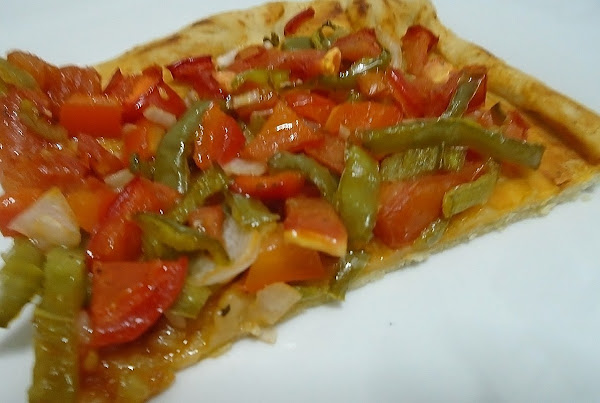 Una vez que empieza a dorar sacamos del horno, escurrimos bien las verduras, acordaros que el tomate tiene mucha agua y le hemos añadido el aceite, por ese motivo es importante meter la masa en el horno sola.