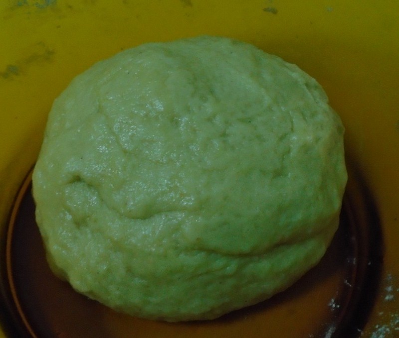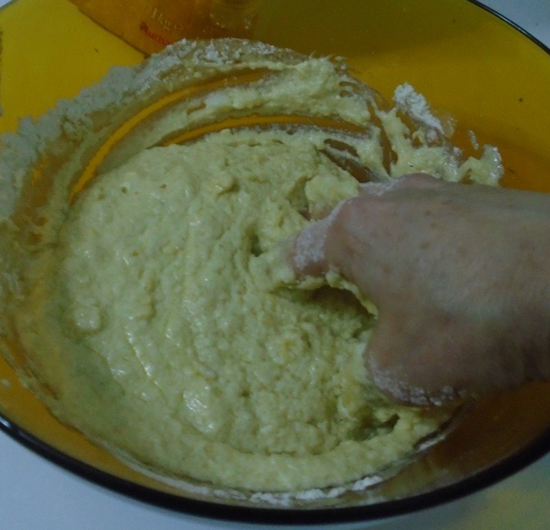 Incorporamos la harina poco a poco y lo vamos mezclando con las manos, una vez mezclado añadimos un poco de sal, amasamos fuera del bol, en una superficie lisa untada con un poco de harina hasta obtener una masa firme pero tierna.