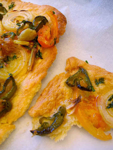 Esta coca para mi ha sido todo un descubrimiento,es muy parecida a la típica coca de tomate Valenciana,a la que estoy habituada a comer,pero con la masa mas finita,y con verduras por encima, ,,,buenísima,la voy a repetir mas veces seguro.