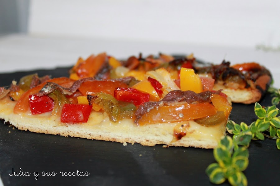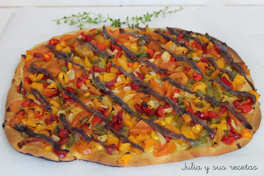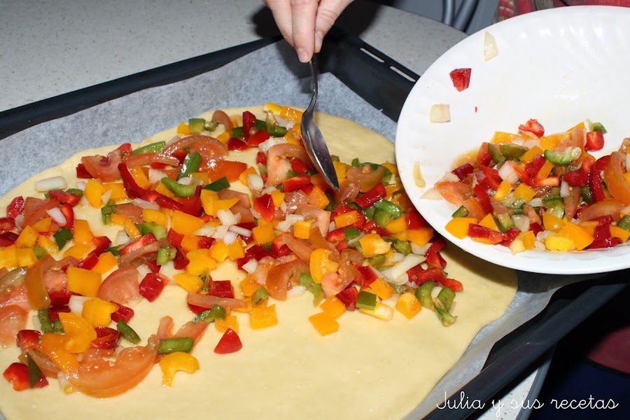 Este mes nos ha tocado la comunidad de Las Islas Baleares y la receta elegida es la Coca de trampó. La masa de la coca es muy fácil de preparar, y el trampó es una ensalada de pimientos, cebolla y tomates muy rica. El trampó se puede modificar según los gustos de cada uno. Yo la he hecho tal cual aunque le he añadido unas anchoas para que le de un punto de mas sabor.