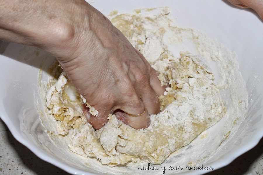 La pasamos a la mesa y amasamos durante 5 minutos hasta conseguir una masa elástica.