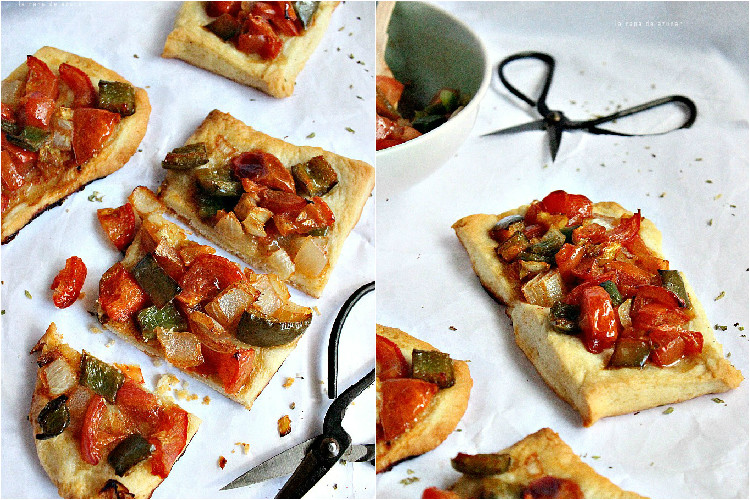 Mientras la masa leva cortaremos las verduras a cuadrados pequeños y las colocamos todas juntas en un bol. Añadimos un buen chorro de aceite, bien de sal y el pimentón. Dejamos reposar para que mezclen los sabores.