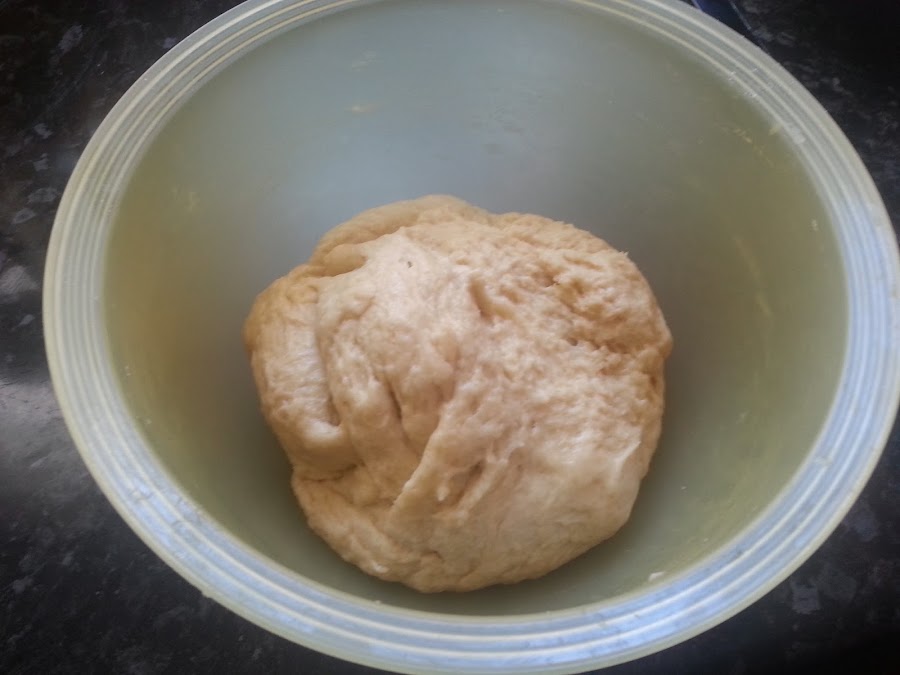 Vamos removiendo con la mano y añadiendo harina harina hasta que la masa se despegue de los dedos. Tiene que quedar una masa manejable con las manos.