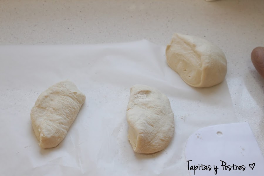 Estiramos con el rodillo cada bola y damos forma alargada. Dejamos que repose la masa de nuevo.