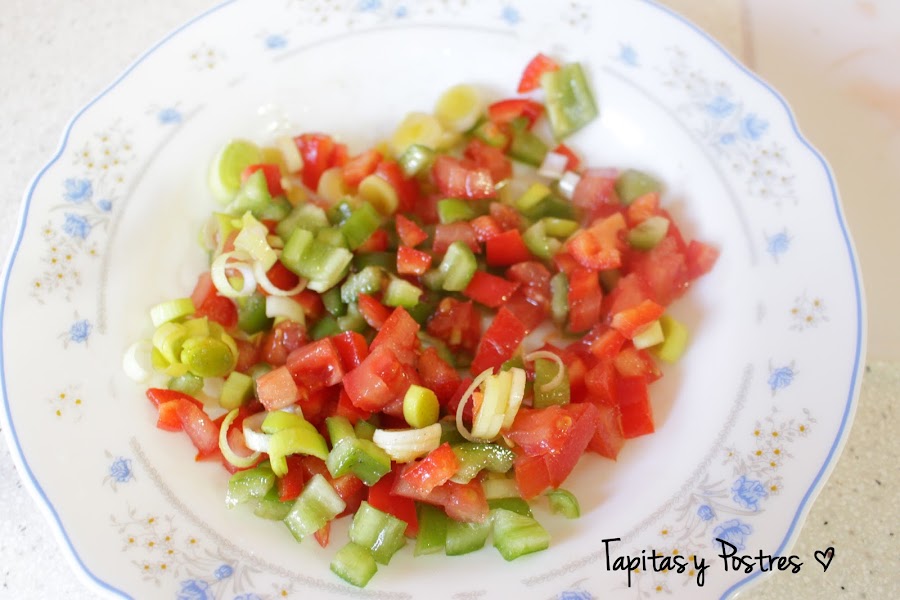 Mientras preparamos las verduras. Las picamos y sazonamos.