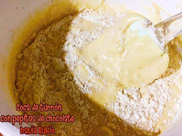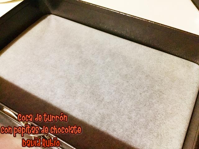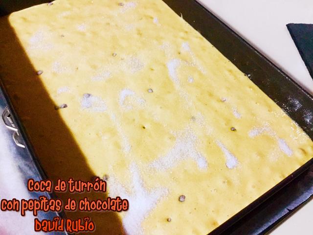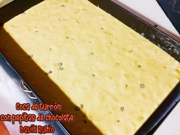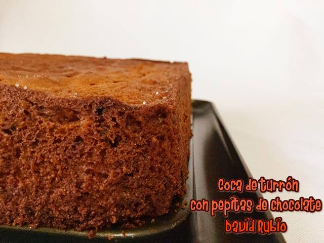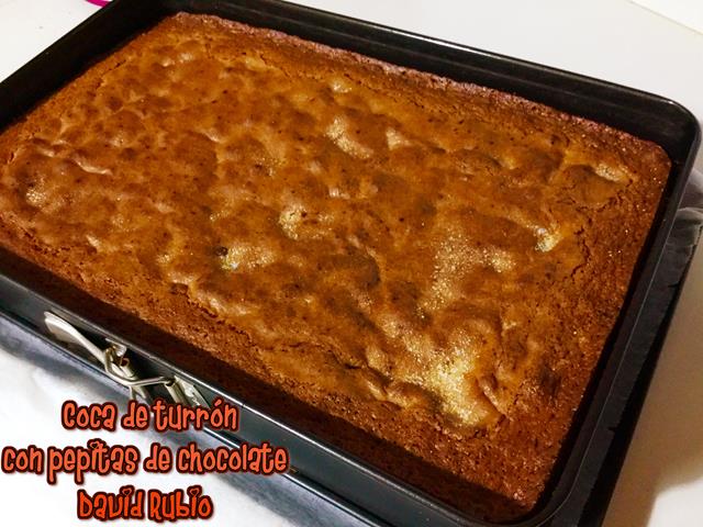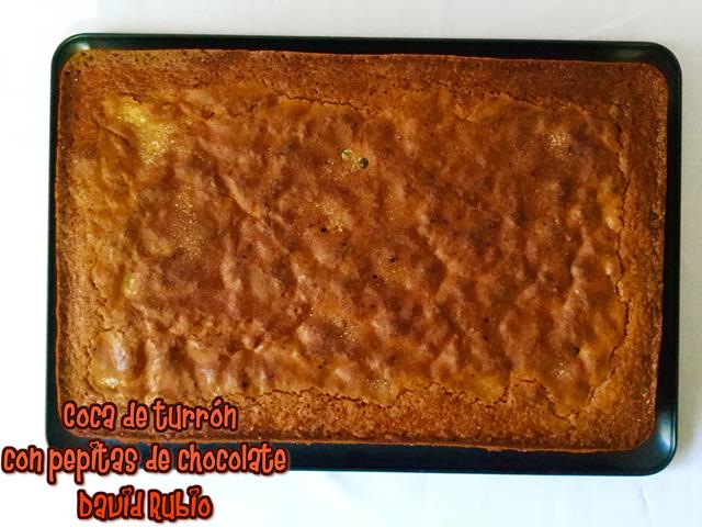 Coca de turrón con pepitas de chocolate