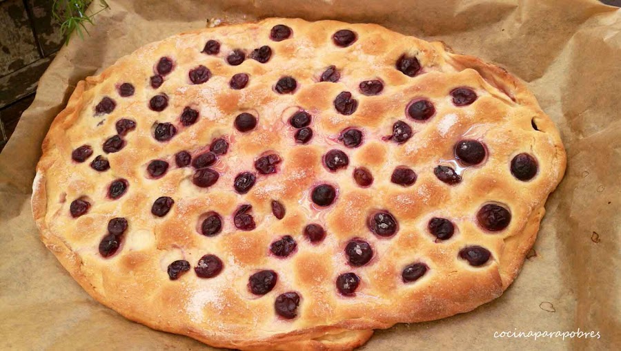 Colocamos sobre esta uvas, las cuales habremos lavado y cortado por la mitad, podemos poner tantas como deseemos. Espolvoreamos 2 cucharadas de azúcar.