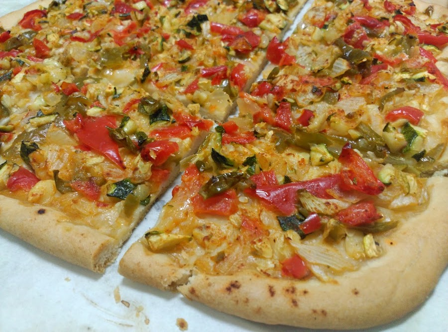 La coca de verdura lleva literalmente solo verdura como bien define el nombre,pero a pesar de no llevar otros ingredientes más "chicha" queda muy rica y apetecible.