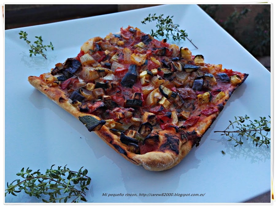 Una vez esta toda la verdura bien repartida la metemos en el horno y vamos vigilando hasta que queda todo bien listo, la masa tiene que quedar crujiente.