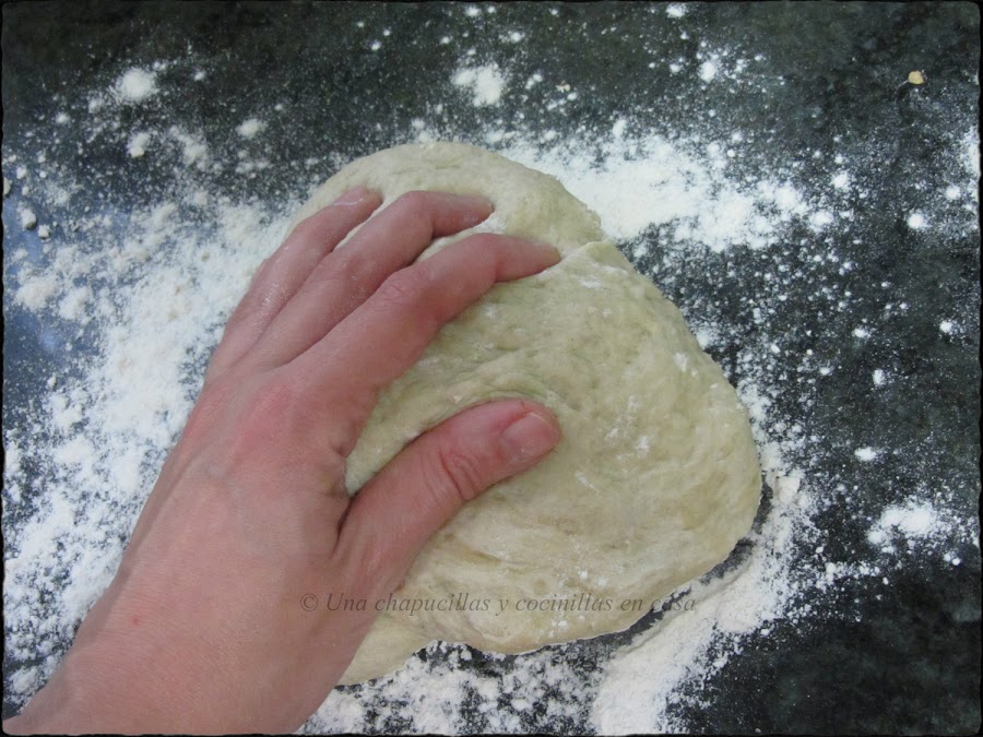 Cuando empiece a coger consistencia, nos pasamos a amasar en la encimera durante unos 5 minutos.