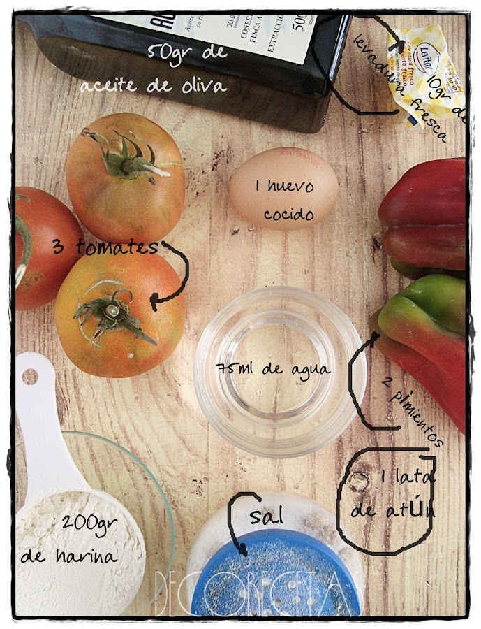 Tan fácil como hacer la masa metiendo el agua con la sal 1 minuto a 37º en la thermomix, para posteriormente añadir la levadura, mezclarla 5 segundos a velocidad 5 y añadir la harina. Amasaremos 3 minutos a velocidad espiga. Extendemos la masa, y disponemos encima el sofrito de pimiento, atún y tomate.