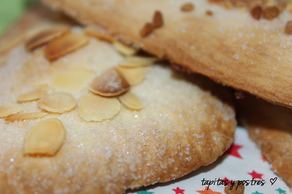 Meter en el horno precalentado a 180º durante veinte minutos. Luego pintar por encima con el anís y colocar las almendras laminadas en unas y almendras crocantis en otras. Seguir horneando unos 15 minutos más, hasta que las veamos doradas.