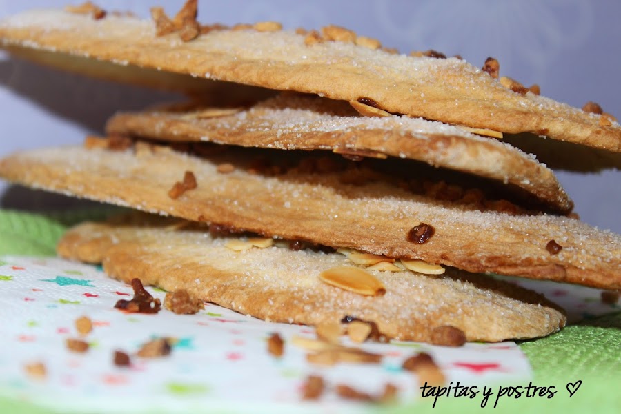 El secreto está en hacer la masa muy fina, cuanto más delgada la hagamos, mucho mejor nos quedará. Otra característica de esta coca es su suave aroma a anís que la hace muy apetecible. Yo la he preparado con la receta de una revista de postres y la he adaptado a la thermomix. Le he añadido almendras en láminas y en cubitos, pero se le puede poner piñones, pistachos.. al gusto.