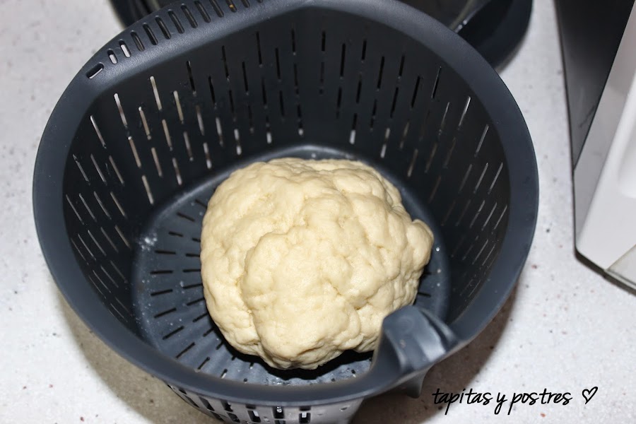 Es una masa muy fácil de hacer y no se necesita ni siquiera un robot amasador, pero yo la he hecho con la thermomix.